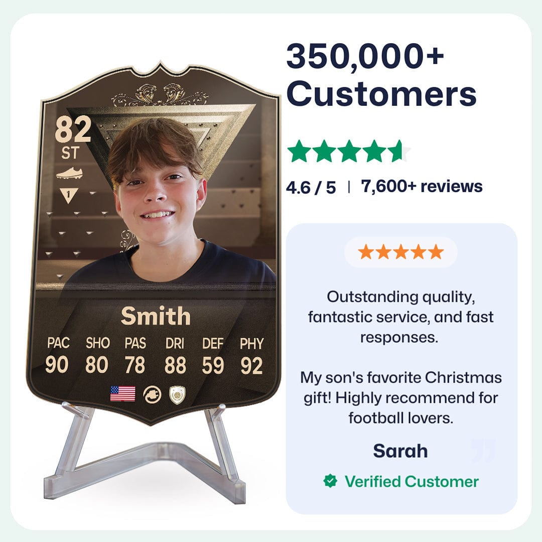 Once you’ve personalised your card, our design experts will edit your photo, design your card, and bring it to life in stunning quality. You’ll get a full preview before we print your card and every card’s quality is backed by our Gold Standard Guarantee. So far, over 350,000+ football fans agree: A CardsPlug football card is the ultimate football gift!