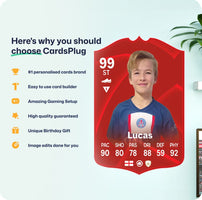 CardsPlug is home to the world’s favourite personalised football cards. Our easy football card builder lets you make a real life football card with your own name, photo, and skill ratings. With 100+ designs to choose from and some inspired by EA SPORTS FC 26 cards seen in EA FC 26, EA FC 25 and FC 24 as well as FIFA cards seen in games like FIFA 23 and FIFA 22.