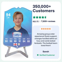 Yes! Our football card designers will remove the background from the photo you upload so it looks just like the football cards you might’ve seen games like EA FC 25, EA FC 24 or FIFA. We’ll also position the photo perfectly on the football card so it looks great. If there are any problems with the quality of your photo, we’ll reach out and let you know. Plus, our website's AI will remove the background on the image for visual purposes before purchase so you can see it without a background on the card.
