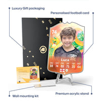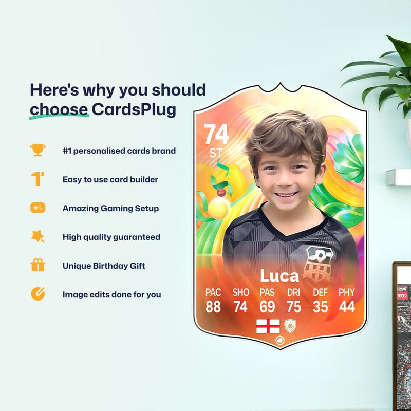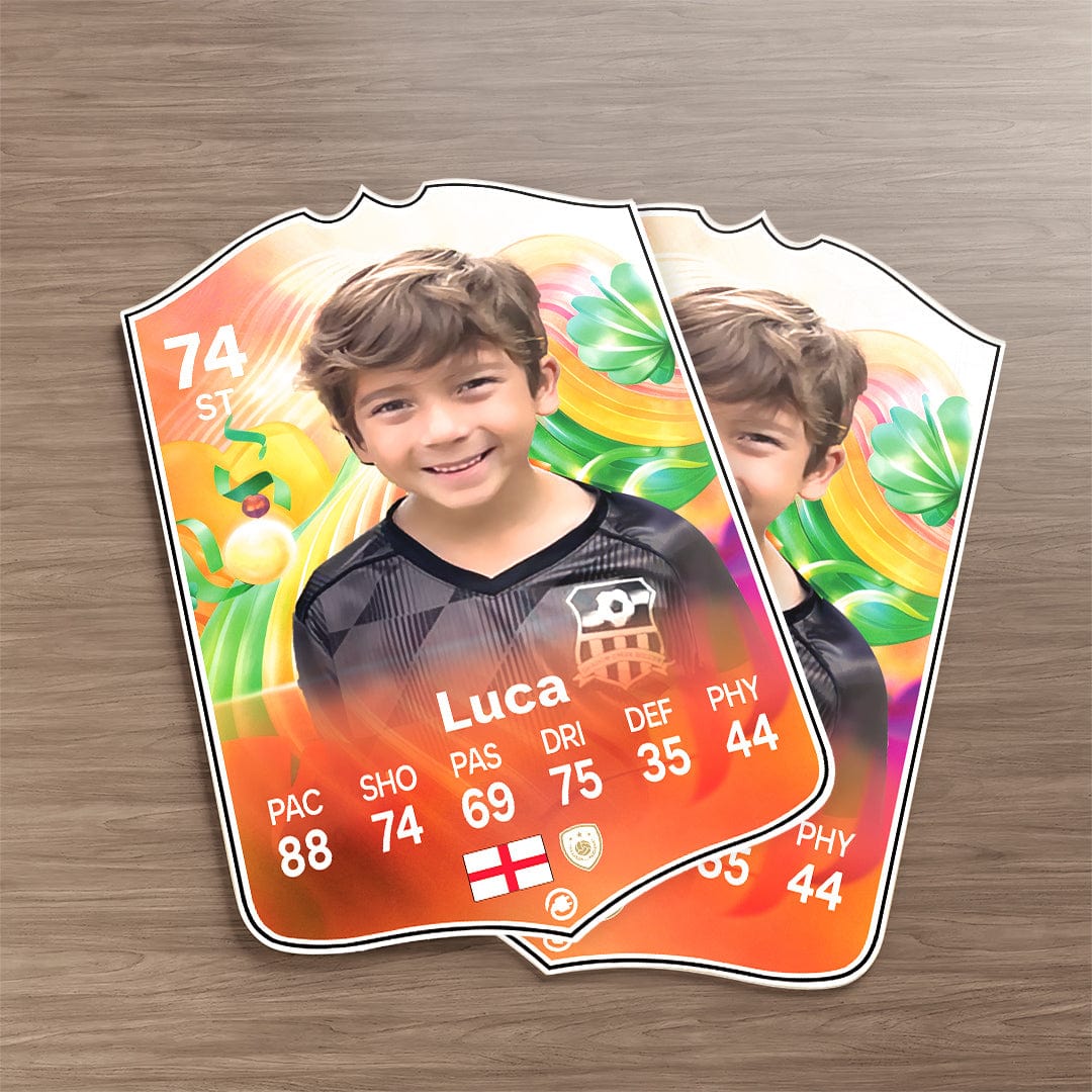 CardsPlug is home to the world’s favourite personalised football cards. Our easy football card builder lets you make a real life football card with your own name, photo, and skill ratings. With 100+ designs to choose from and some inspired by EA SPORTS FC 26 cards seen in EA FC 26, EA FC 25 and FC 24 as well as FIFA cards seen in games like FIFA 23 and FIFA 22.