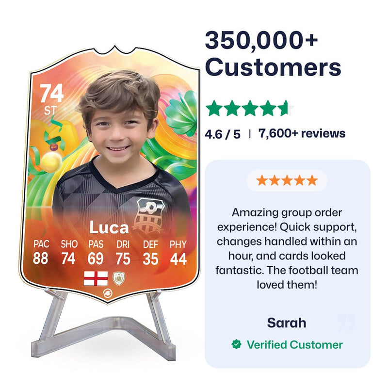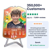 Yes! Our football card designers will remove the background from the photo you upload so it looks just like the football cards you might’ve seen games like EA FC 25, EA FC 24 or FIFA. We’ll also position the photo perfectly on the football card so it looks great. If there are any problems with the quality of your photo, we’ll reach out and let you know. Plus, our website's AI will remove the background on the image for visual purposes before purchase so you can see it without a background on the card.