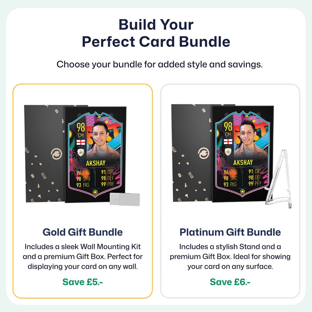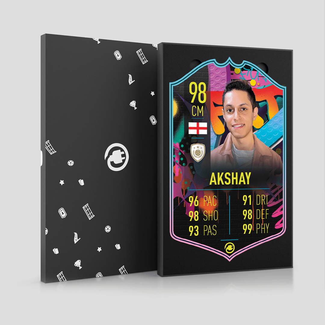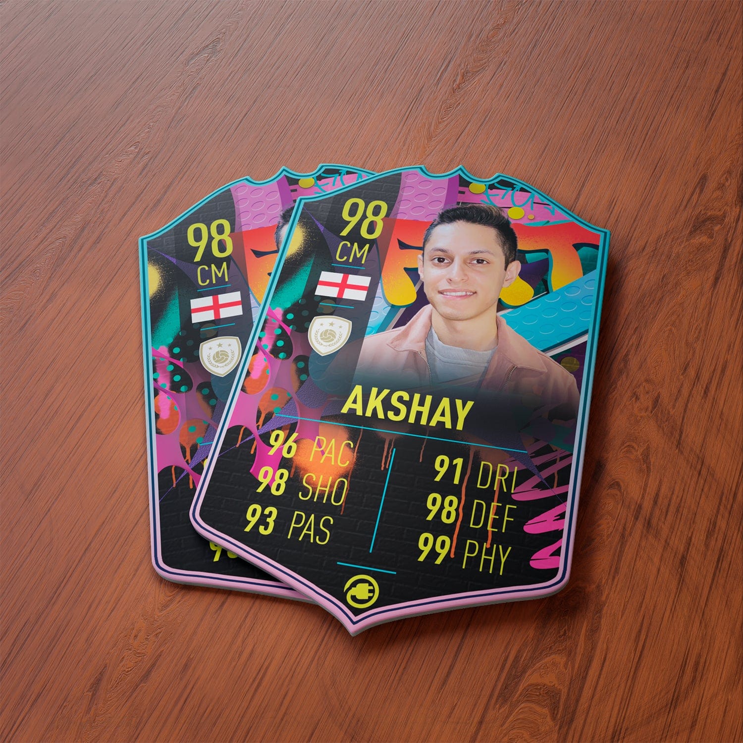 CardsPlug is home to the world’s favourite personalised football cards. Our easy football card builder lets you make a real life football card with your own name, photo, and skill ratings. With 100+ designs to choose from and some inspired by EA SPORTS FC 26 cards seen in EA FC 26, EA FC 25 and FC 24 as well as FIFA cards seen in games like FIFA 23 and FIFA 22.